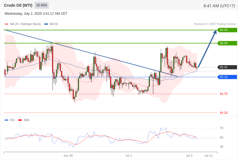ការវិភាគបច្ចេកទេសតម្លៃប្រេងឆៅ (WTI) អាចកើនឡើងចន្លោះពី​ 65.15- 66.40
