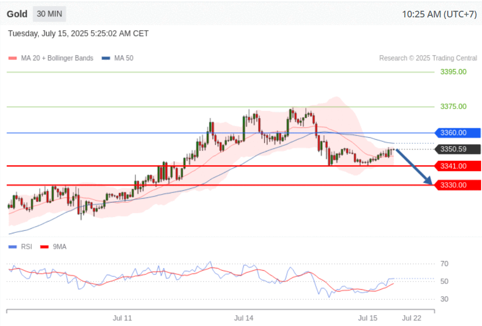 Short positions below 3360.00 with targets at 3341.00 & 3330.00 in extension.