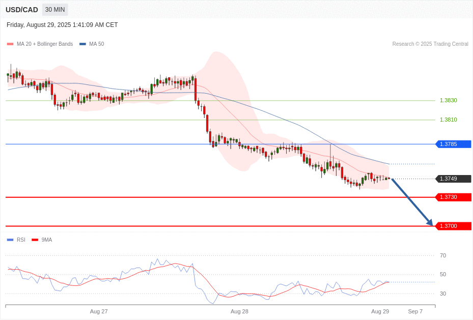 📅 ការវិភាគបច្ចេកទេសតម្លៃគូរូបិយប័ណ្ណ CAD/USD ប្រចាំថ្ងៃពុធ ទី ២៩ ខែសីហា ឆ្នាំ២០២៥