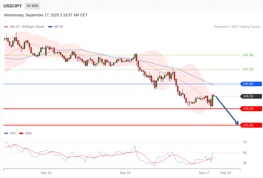 📈 Our preference: Short positions below 146.80 with targets at 146.20 & 145.80 in extension.