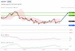ការវិភាគបច្ចេកទេសតម្លៃគូរូបិយប័ណ្ណ JPY/USD ប្រចាំថ្ងៃពុធ ទី ៣០ ខែសីហា ឆ្នាំ២០២៥