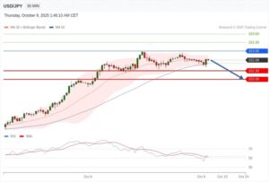 ការវិភាគបច្ចេកទេសតម្លៃគូរូបិយប័ណ្ណ JPY/USD ប្រចាំថ្ងៃពុធ ទី ០៩ ខែតុលា ឆ្នាំ២០២៥