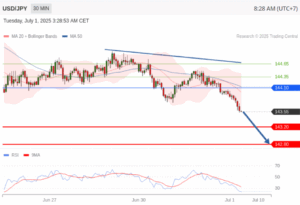 ការវិភាគបច្ចេកទេសតម្លៃគូរូបិយប័ណ្ណ USD/JPY អាចធ្លាក់ចុះចន្លោះពី 144.10 – 142.80