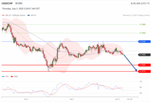 ការវិភាគបច្ចេកទេសតម្លៃគូរូបិយប័ណ្ណ USD/CHF អាចធ្លាក់ចុះចន្លោះពី 0.7940 – 0.7870