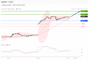 ការវិភាគបច្ចេកទេសតម្លៃគូរូបិយប័ណ្ណ JPY/USD ប្រចាំថ្ងៃពុធ ទី ០៧ ខែតុលា ឆ្នាំ២០២៥